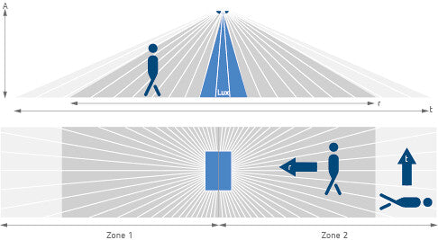 Oświetlenie jest sterowane automatycznie w zależności od ruchu i jasności otoczenia. Zintegrowany pomiar światła mieszanego zapewnia wiarygodne wyniki nawet w zmiennych warunkach oświetleniowych. Dwa potencjometry umożliwiają indywidualną regulację progu przełączania jasności i czasu opóźnienia, umożliwiając precyzyjne dopasowanie do warunków pracy.